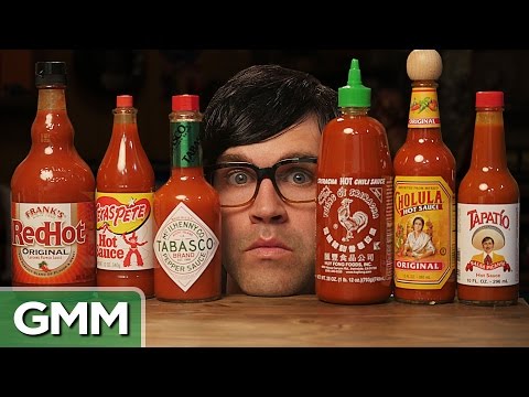 The Blind Hot Sauce Taste Test - Sriracha Vs Tabasco - We try & figure out different hot sauces while blindfolded. GMM #644 Visit http://www.godaddy.com/deals2/?isc=gmm or use the promo code “GMM” at checkout ...